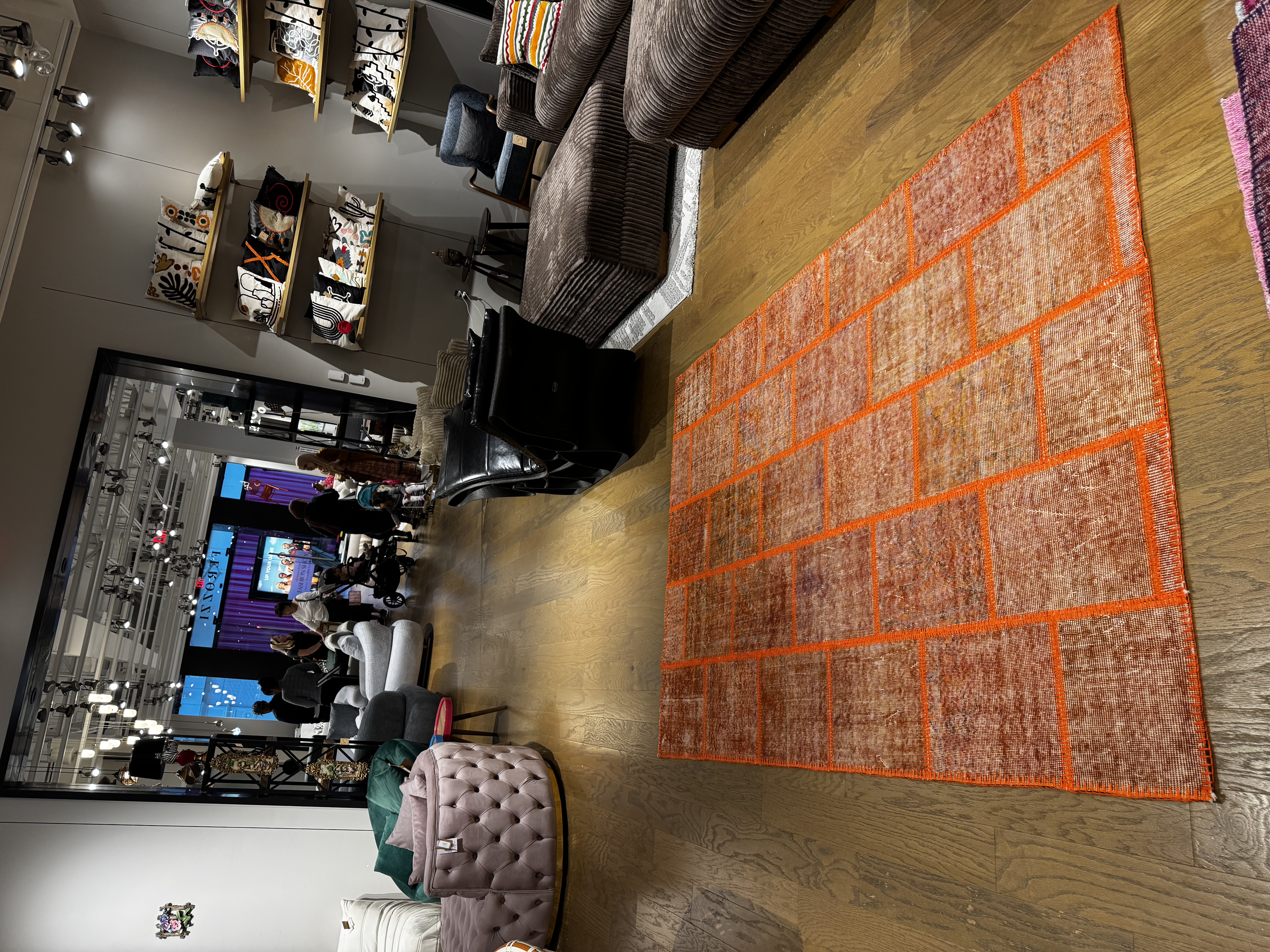 Discover the luxurious charm of our handmade wool area rug, crafted with care from 100% natural sheep wool for enduring quality and comfort. The unique grid patchwork design in rich red and vibrant orange tones brings a modern flair to any living space, from the living room to the dining area.