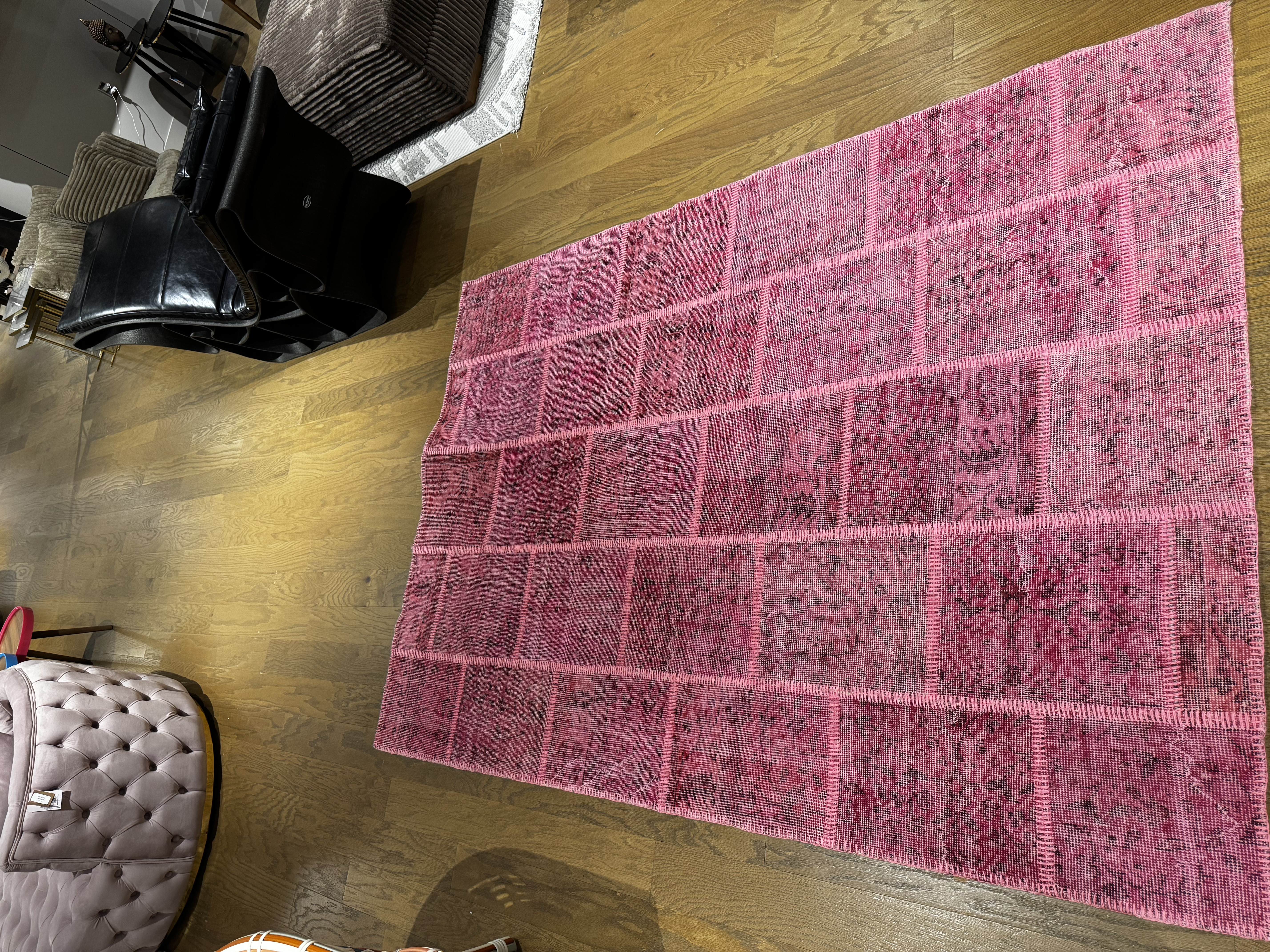 Introduce vibrant elegance into your home with our handmade fuchsia wool area rug, crafted from premium natural sheep wool. The expressive patchwork design in rich fuchsia tones delivers a bold accent carpet that captivates the senses while offering long-lasting comfort and durability.