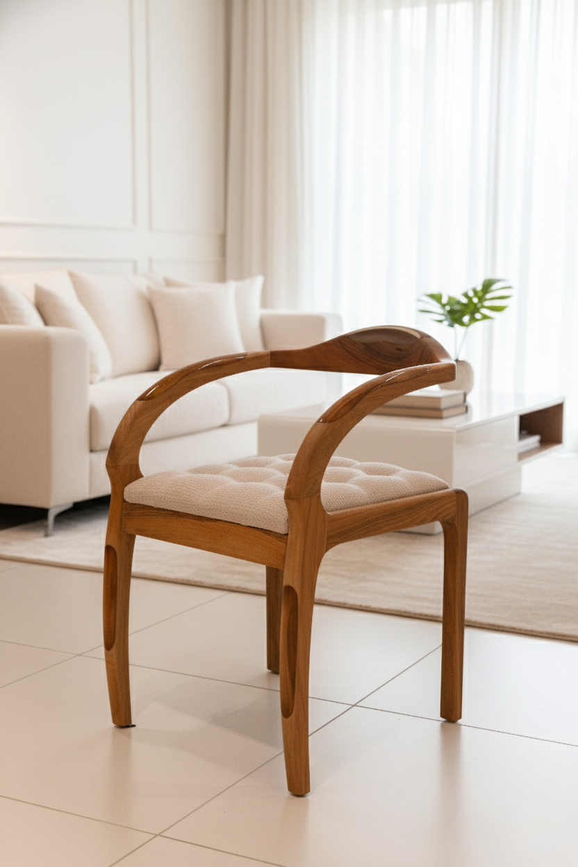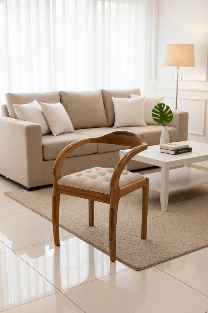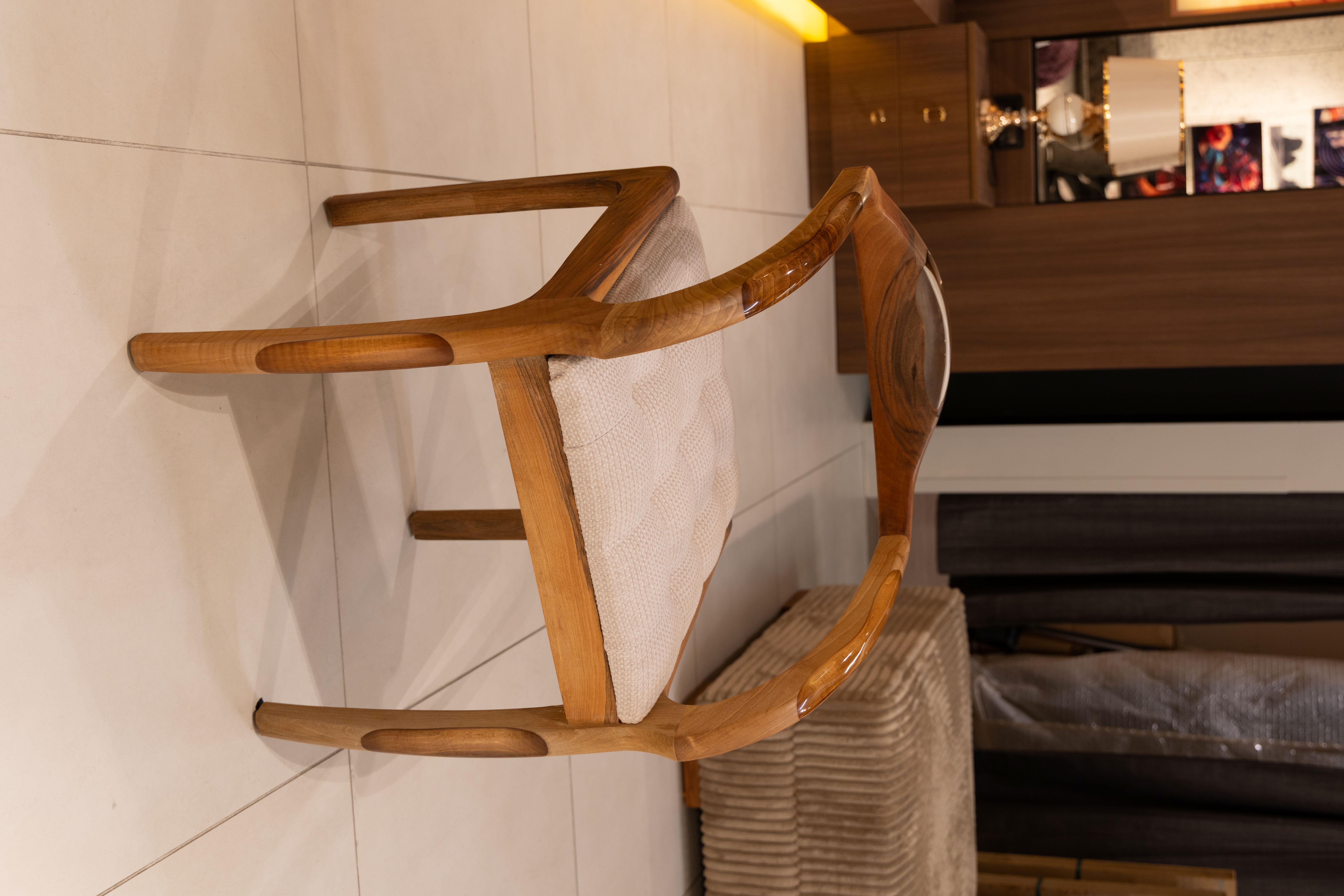 The Ferozzi Epoxy Walnut Chair elevates your interior with refined craftsmanship, premium materials, and striking modern design. Built with a solid walnut frame and upholstered in premium Turkish cotton fabric, this chair blends elegance, comfort and longevity for discerning buyers.