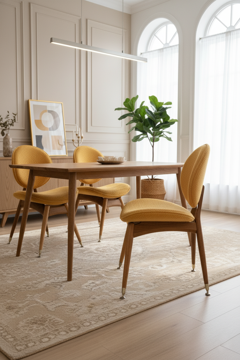 Whether placed around a dining table, used as an accent chair, or incorporated into an office or reading corner, the Ferozzi Teakwood Chair adds warmth and sophistication. Its distinctive color, premium fabric, and handcrafted Teakwood frame make it an eye-catching piece that complements a wide range of interior styles.