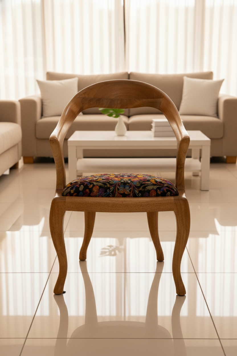 Handmade Solid Wood Chair with Ornate Upholstered Seat | Ferozzi