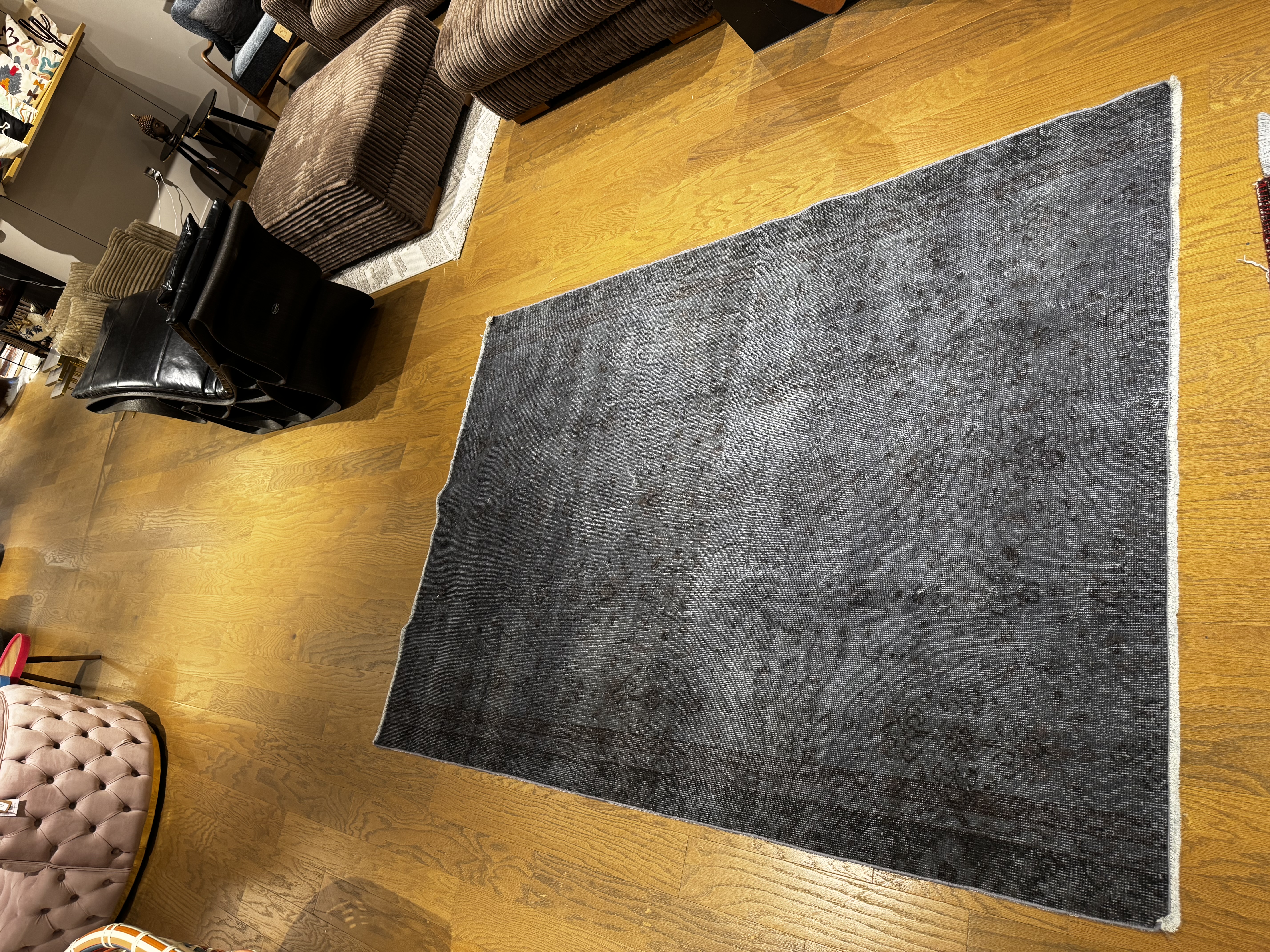 Each rug is handwoven by skilled artisans using premium natural wool fibers that provide a soft yet resilient texture. The hand-dyed dark gray tone offers depth and versatility, perfectly suited to contemporary or classic interiors alike.