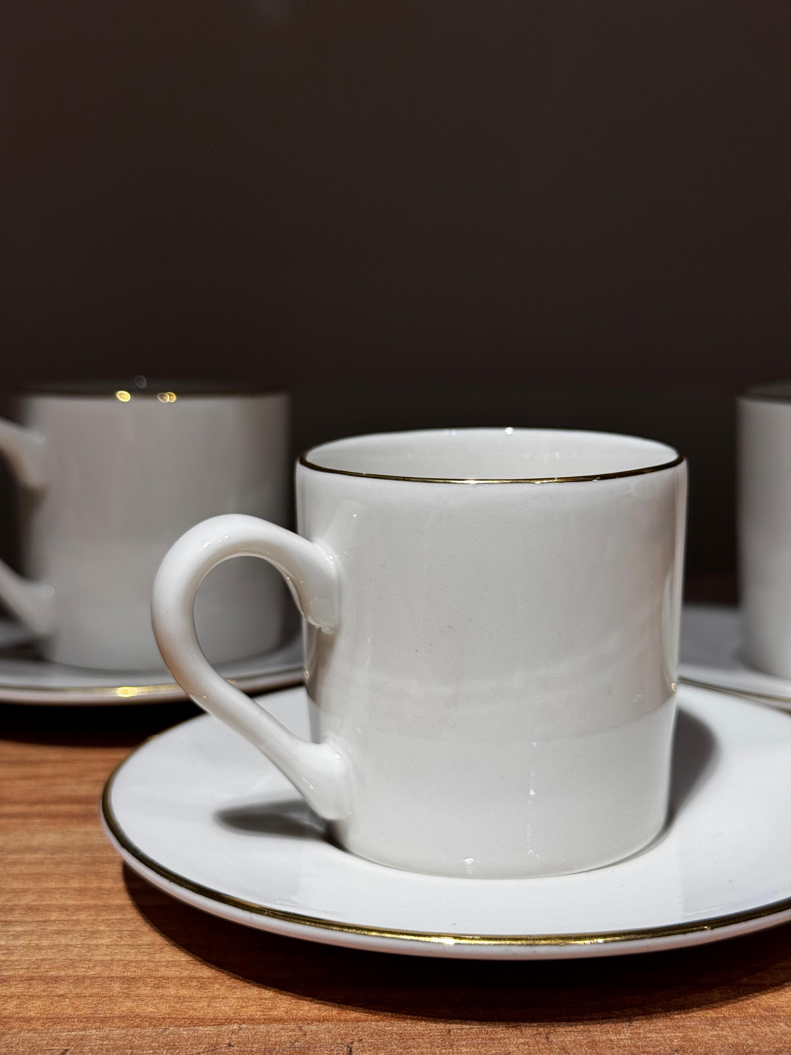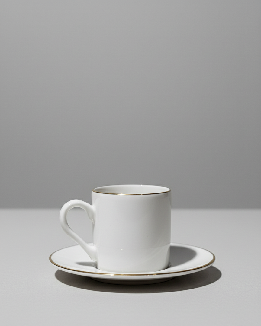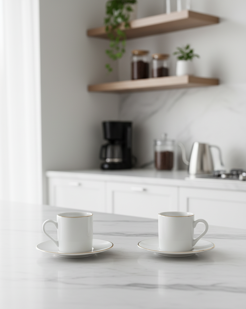 Each cup stands out with refined detailing on a pure white porcelain base. These sophisticated touches bring a sense of elegance and artistic charm, making it perfect for refined Turkish coffee or espresso presentations.