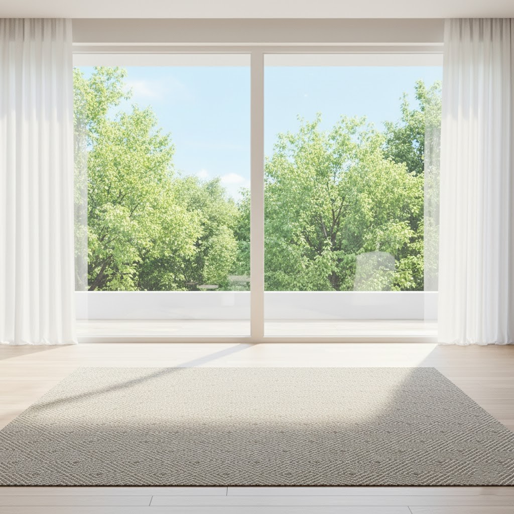 maintaining a clean and timeless aesthetic. Its dense wool pile provides natural softness and insulation,