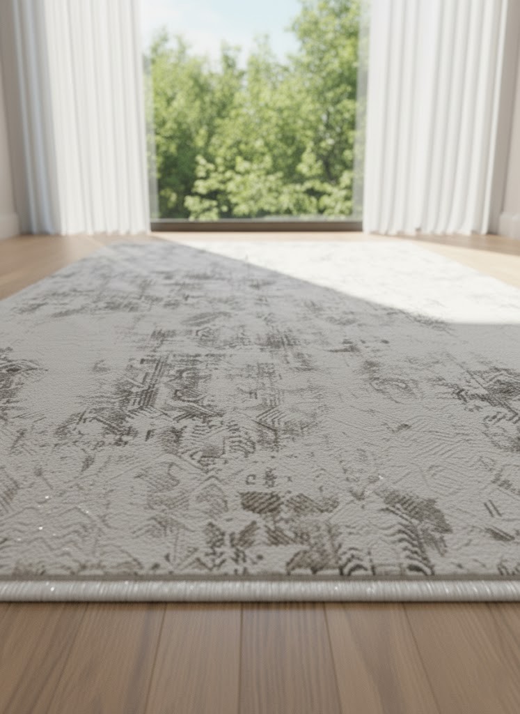 Modern Distressed Area Rug – Ivory, Gray & Beige Vintage Pattern