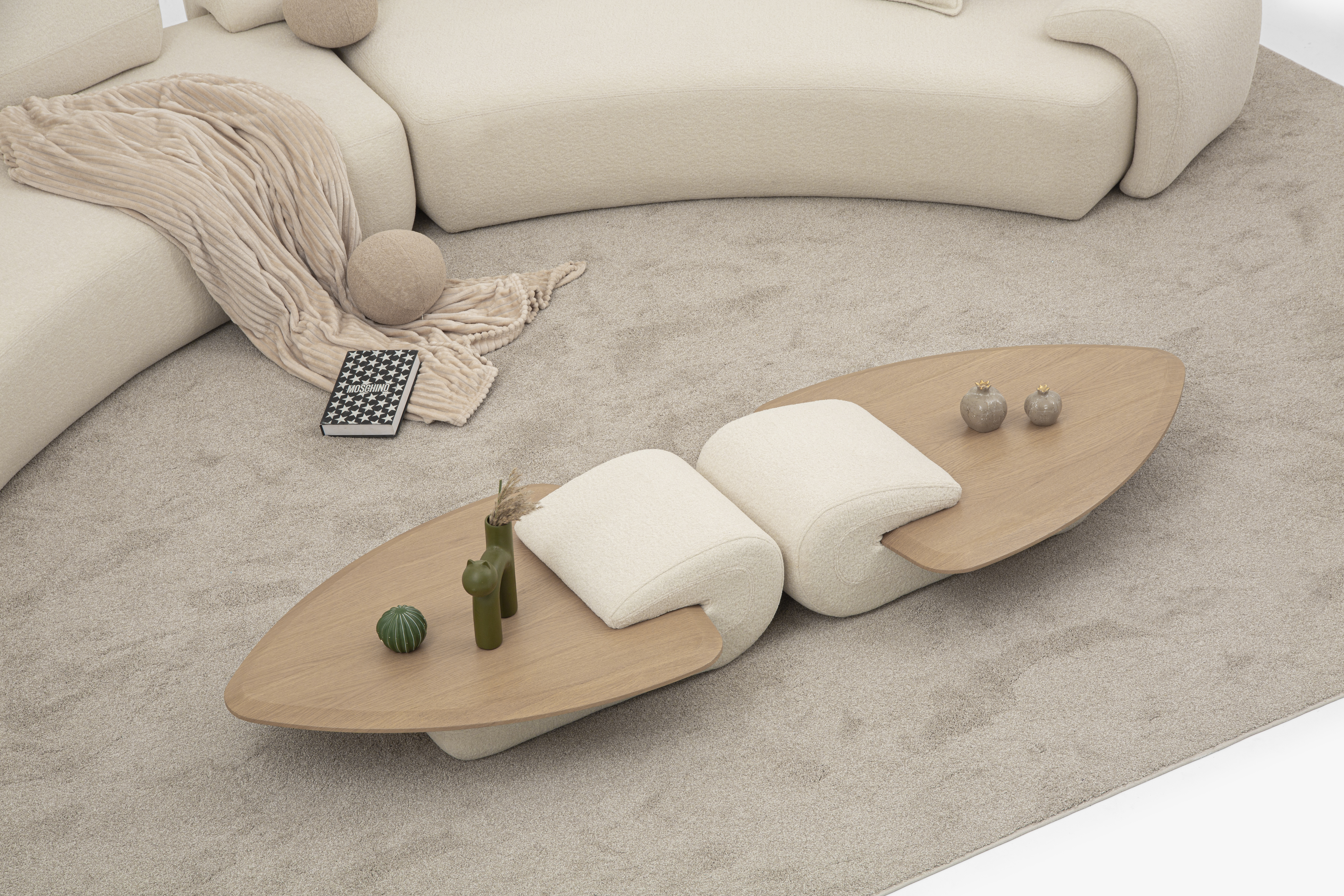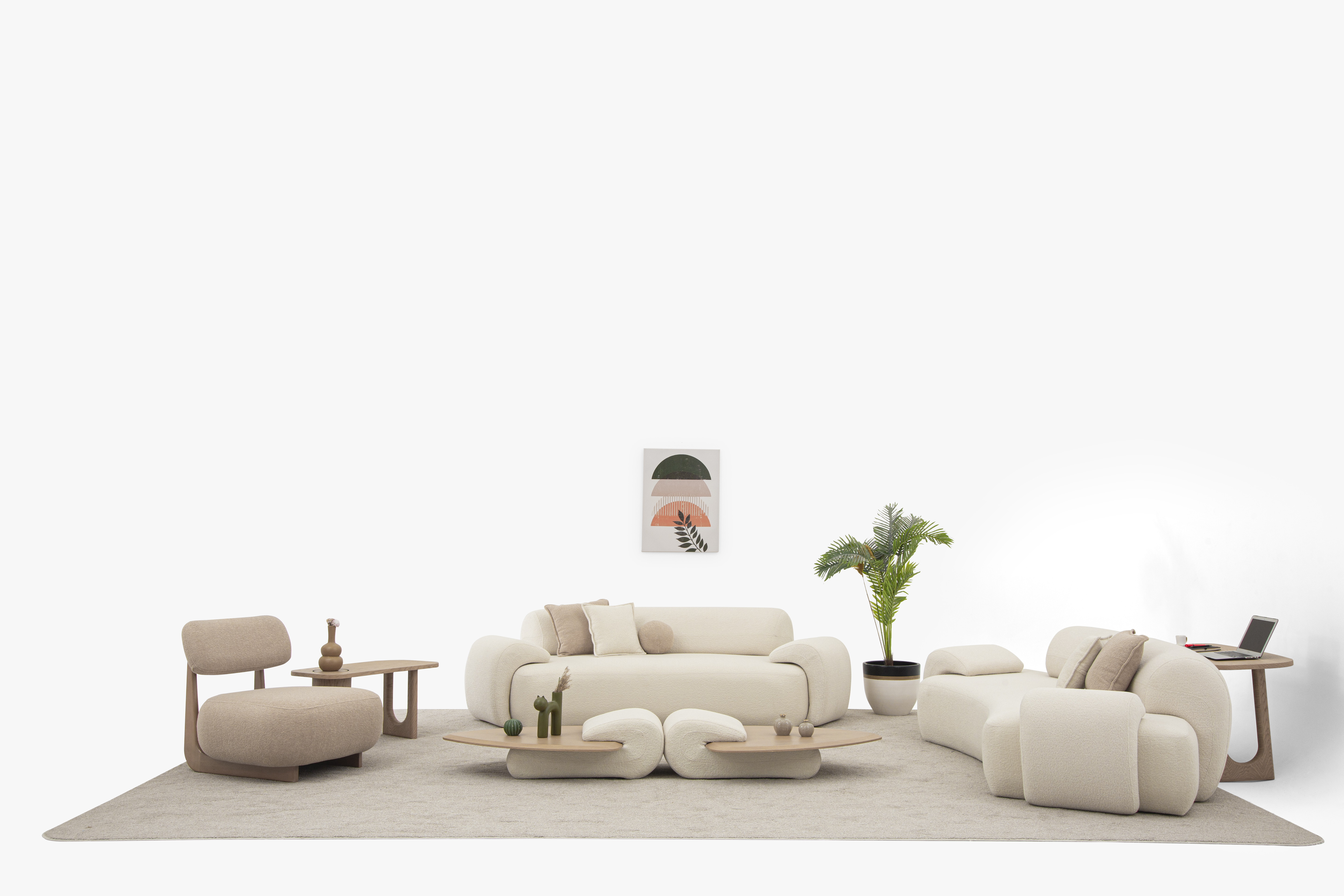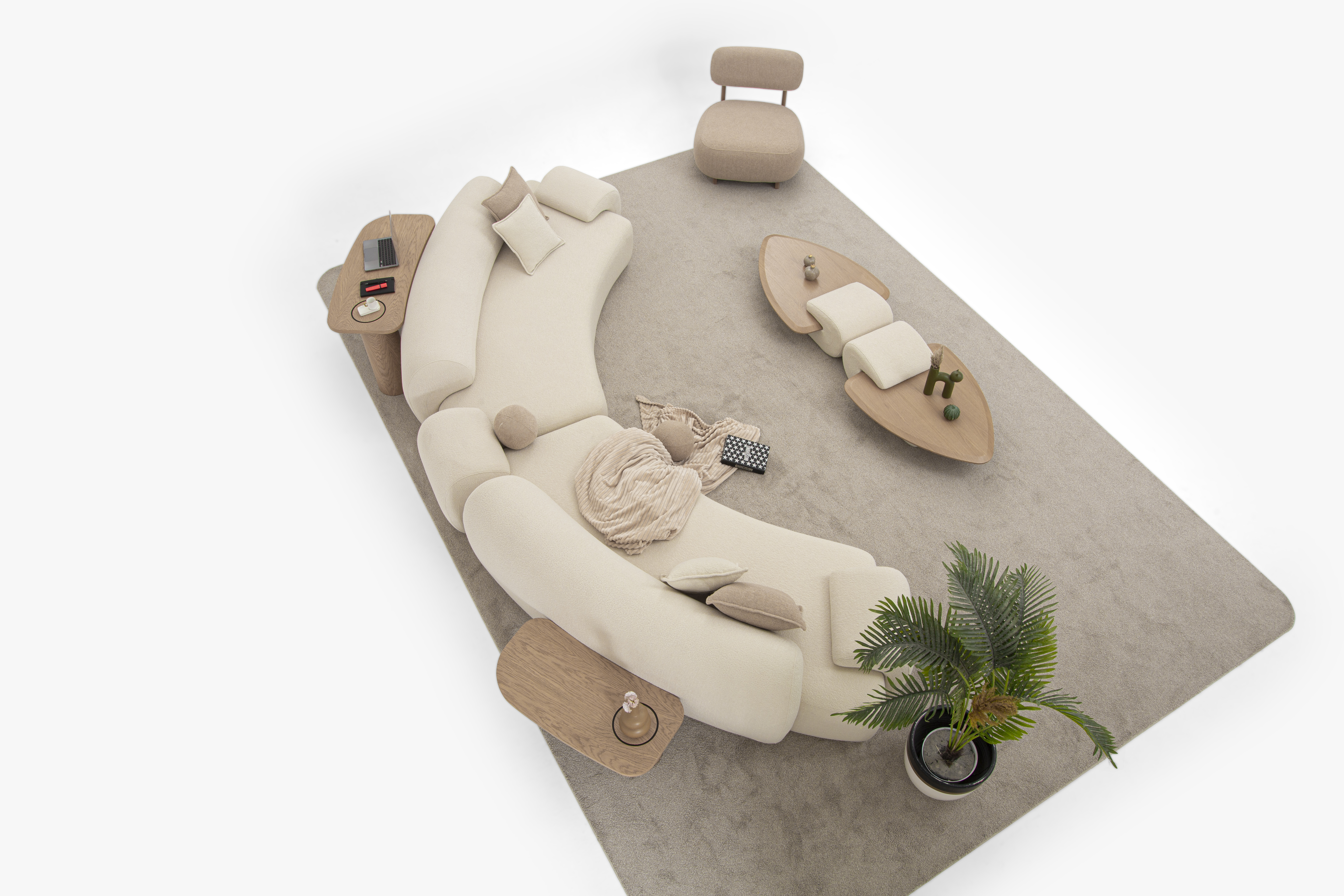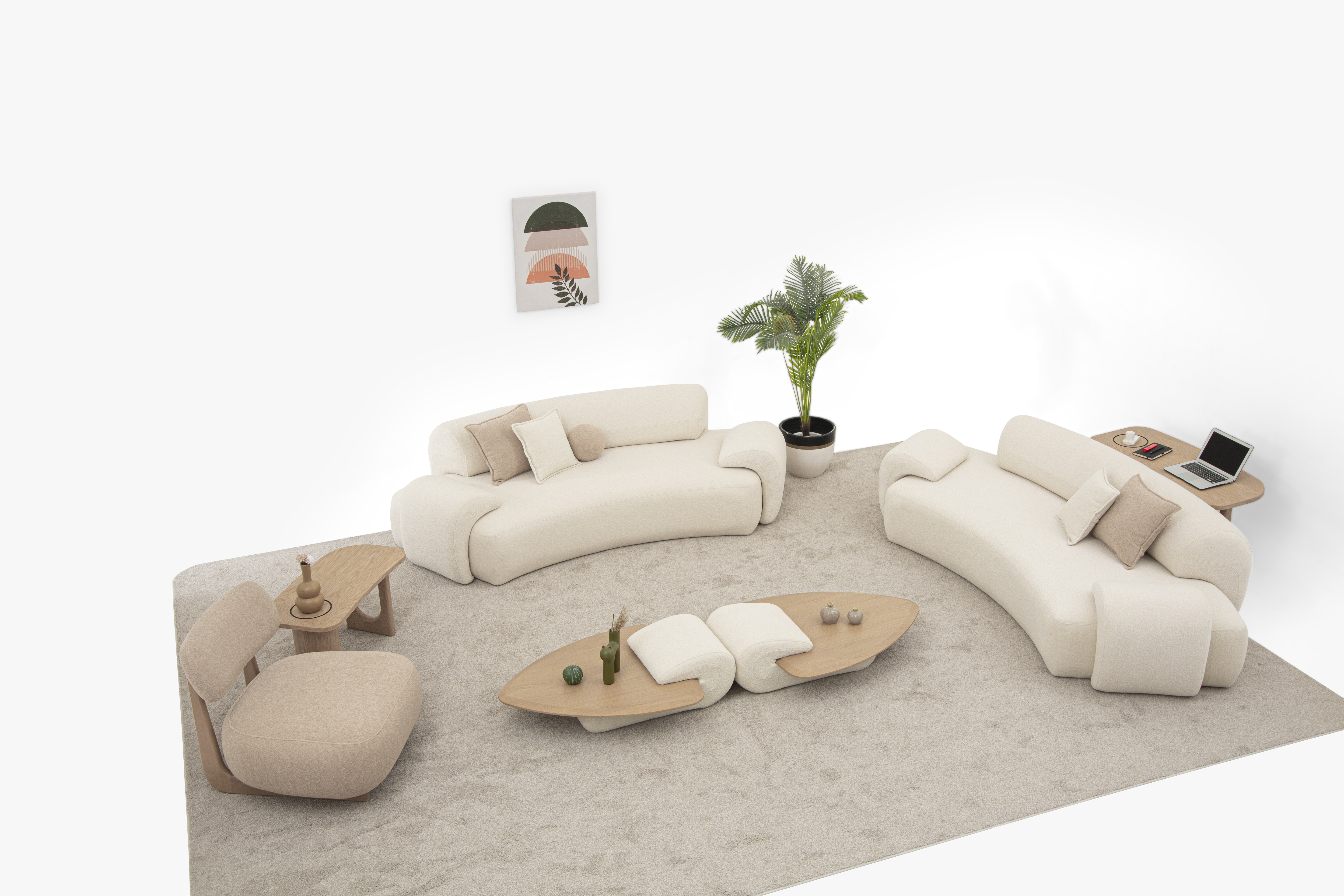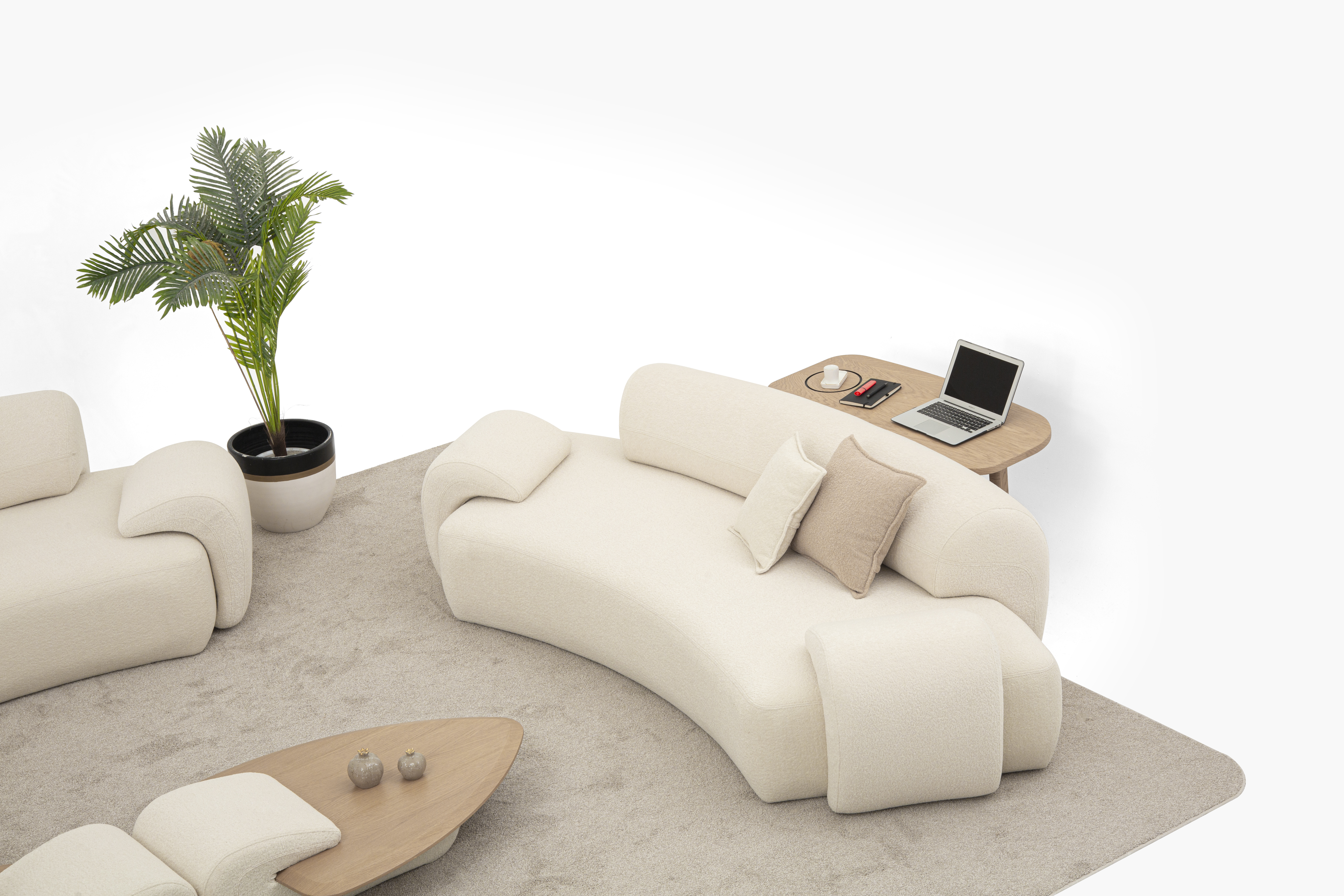 Olympia’s flowing curved form creates a natural conversation layout, adding softness and modern luxury