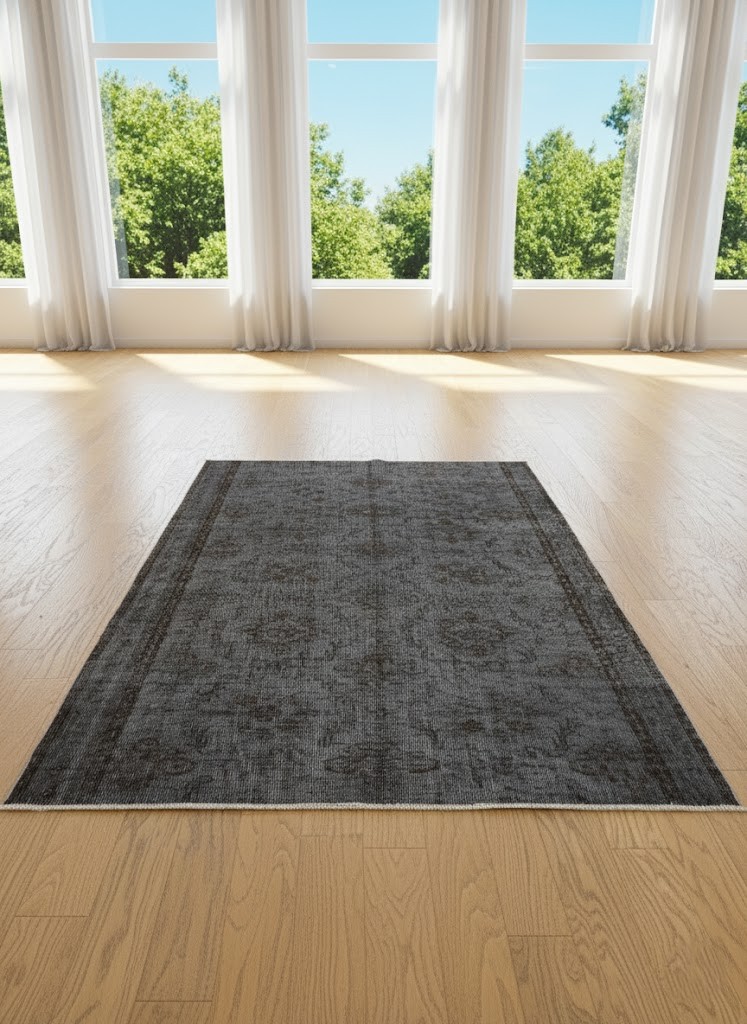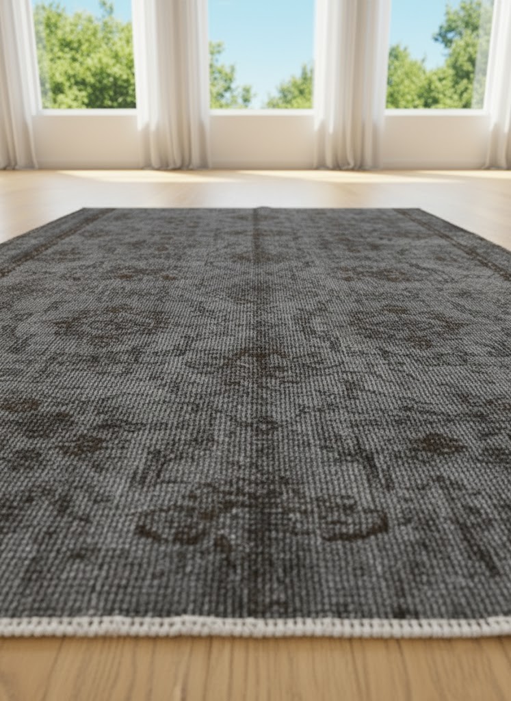 Smoky Elegance Rug – Handwoven Dark Grey Vintage Carpet