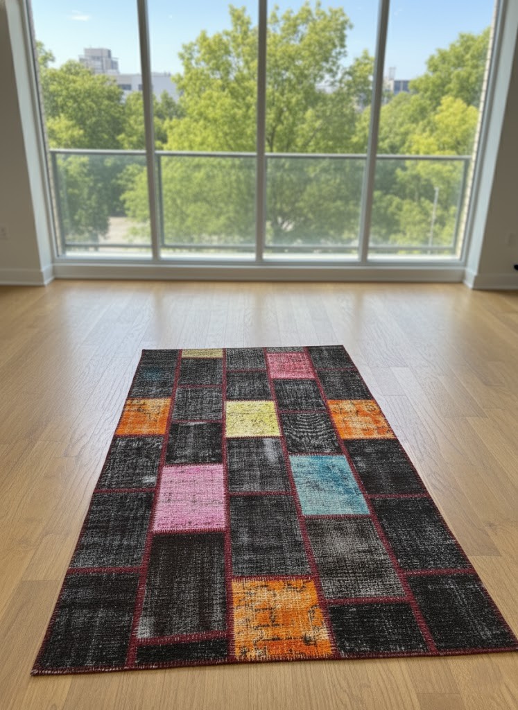 Add vibrant artistry to your home with the Urban Ember Modern Patchwork Rug.