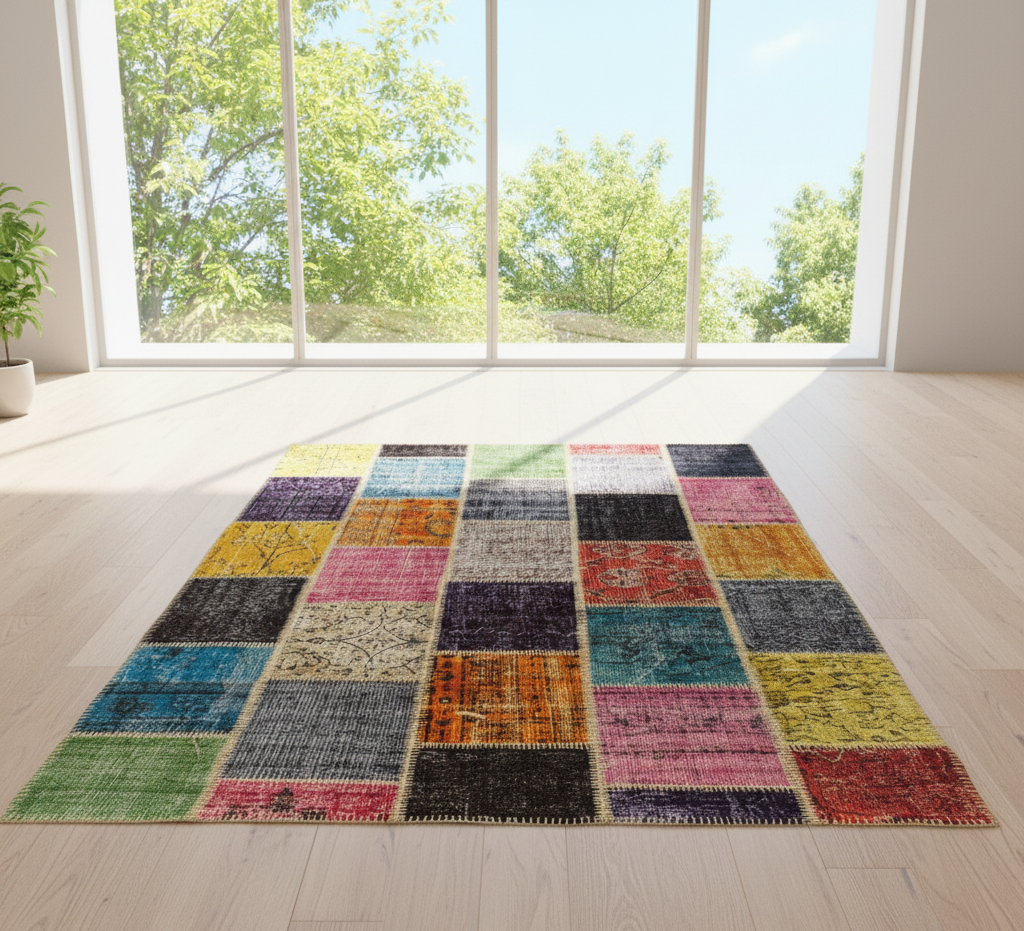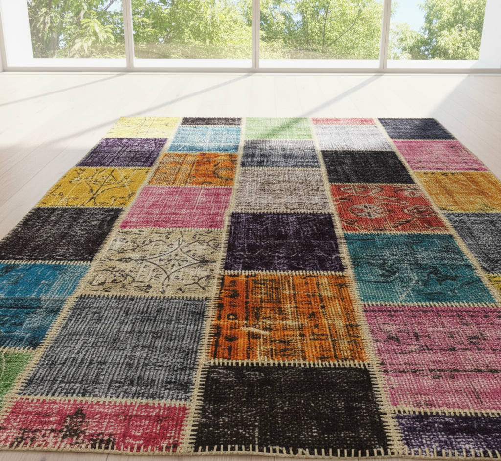 Vibrant Mosaic Patchwork Rug transforms any room into an inspired space.
