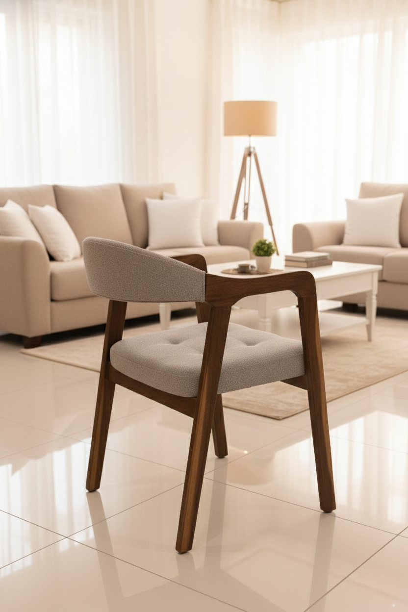 The Walnut Papel Chair embodies refined craftsmanship and modern simplicity. Built on a solid walnut frame for long-term durability and upholstered in premium Turkish cotton, it delivers everyday comfort with a timeless, elegant presence.